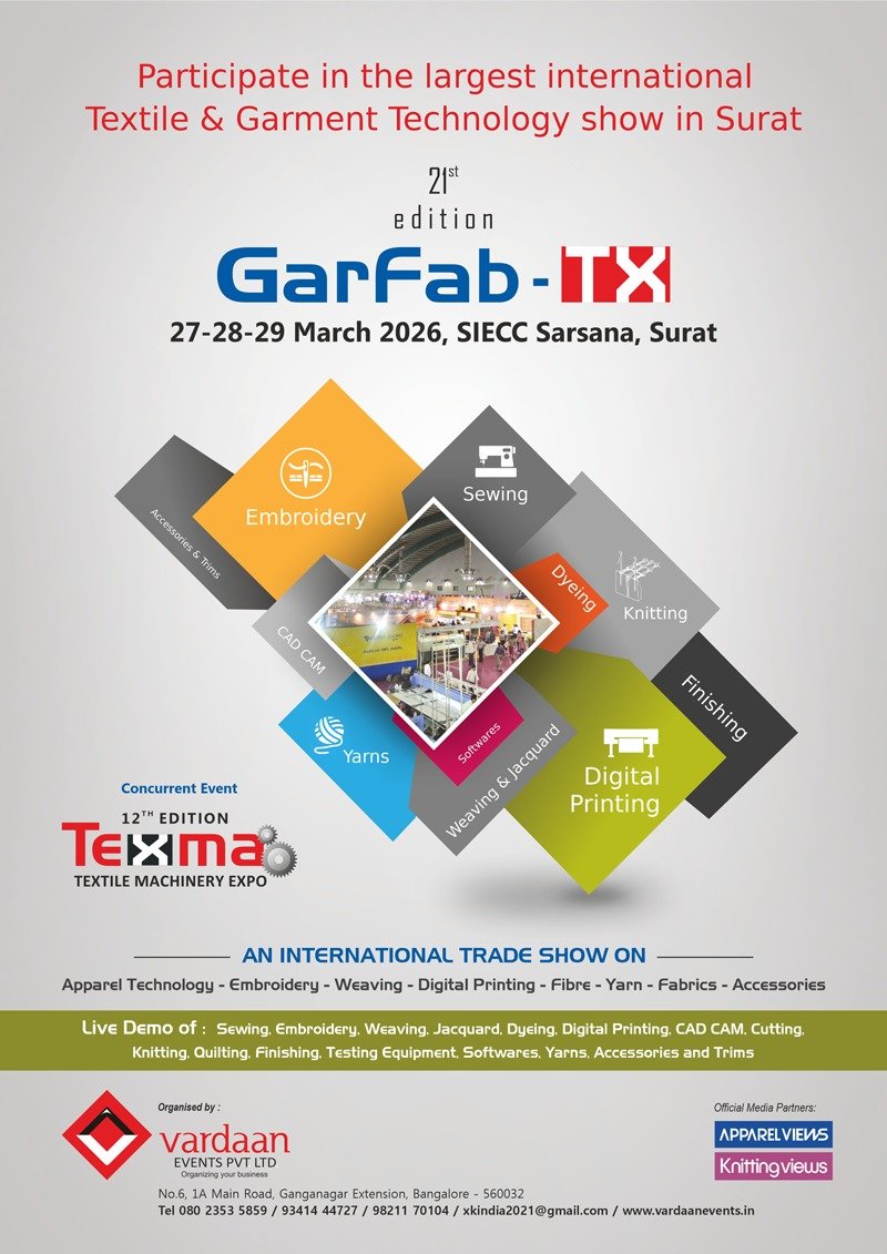 The successful completion of 2017 edition of Garfab – TX Surat, is the indicator of how vibrant the industry is. As Surat is world largest producer of synthetic fabrics and cater to almost 80 per cent of demand from India and abroad. Weaving and printing were the major highlights, though embroidery still remains its backbone. 20th edition will have enhanced presence of textile companies from India and overseas.